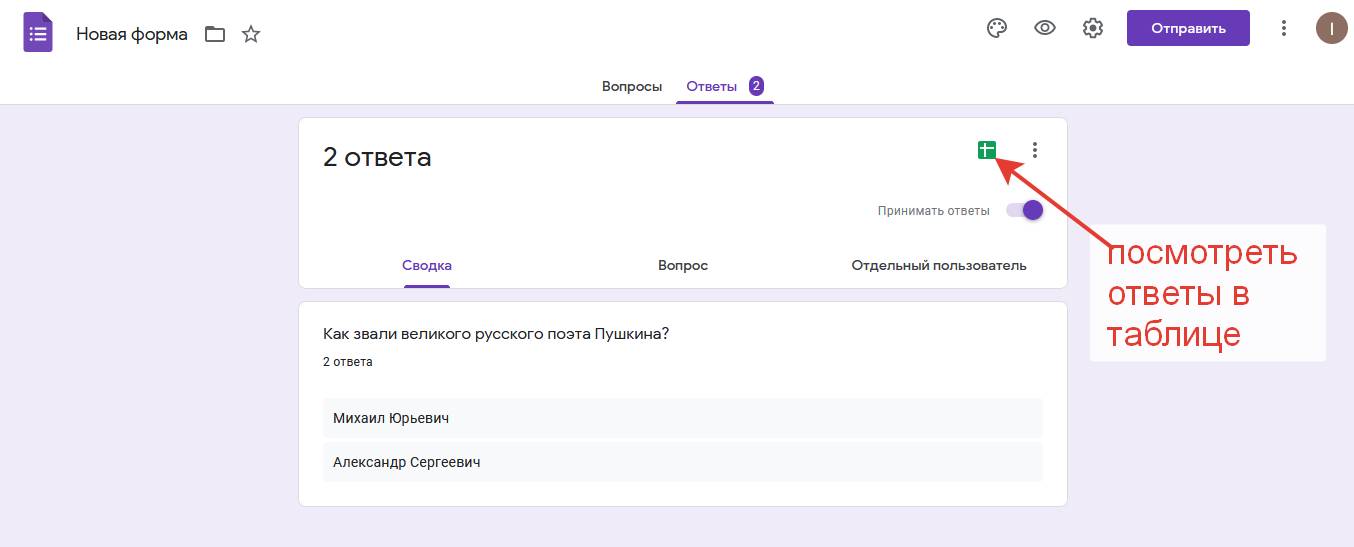 А мы как об этих ответах узнаем? Возвращаемся в нашу форму, где мы составляли вопросы.