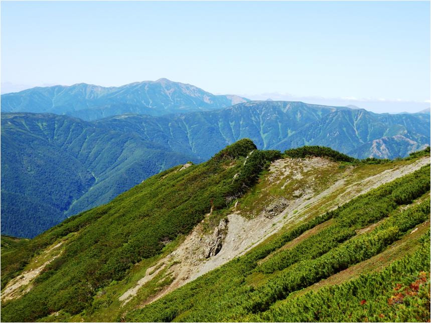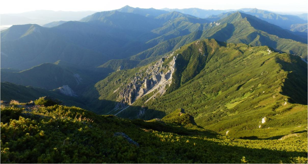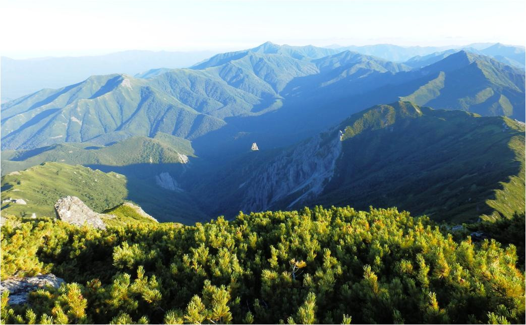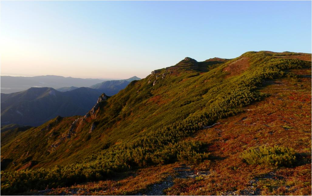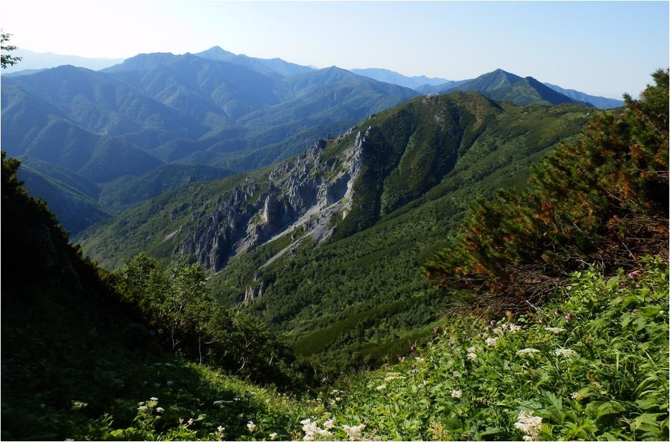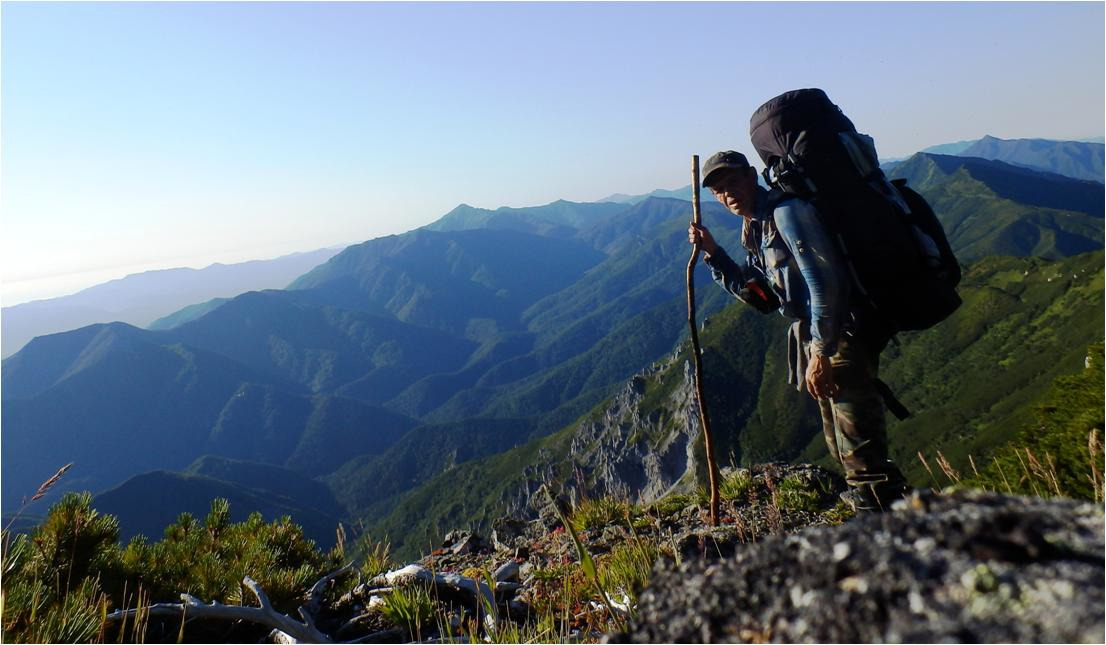 Вернулся на бивуак, приступил к сбору. Сегодня будет жара, а точней пекло. Вздрогнул без десяти семь. Тяжело идти, что плечи болят, это ерунда, лямки узкие. А вот что мышцы на ногах выше колен болят, это не ерунда. Укатали Сивку крутые горки! Укатала гора Граничная Тимоху, конкретно укатала. Прошёл по отрогу, ну что, нужно падать на восточную строну Набельского хребта.