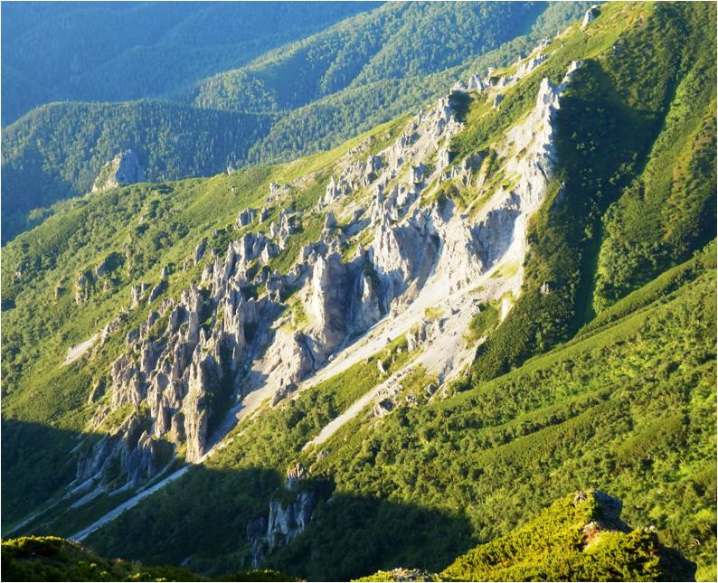 Укатала гора Граничная. Подъём на гору прошёл нормально, тяжело, на грани, устал сильно. Мышцы ног заболели, но слабенько. Вчерашний спуск убил. Да такой спуск заклятому врагу не пожелаешь, жалко будет врага! Ох и путь дорожка фронтовая, но ведь еще не конец. Глядя на средний каменный город, он по левой стороне распадка. Впереди, ниже, будет конкретный перепад.