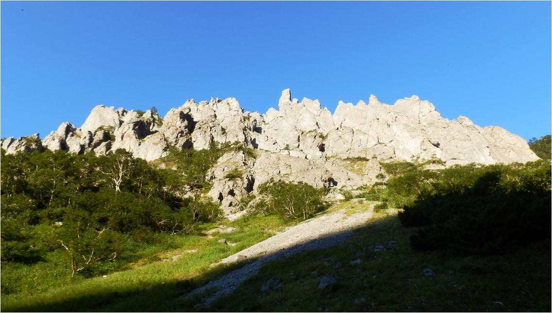 По хорошо набитой стежке вышел на стоянку. Бивуаком это не назовёшь. Свежее кострище, здесь не то что палатки, полога даже не было. Кто-то, месяц назад прошёл здесь по спартански. Да, налегке в полнее реально, за день с базы дотянуть вот до этой развилки. Может, переночевали и снова наверх полезли. Но не через каменные города, а по распадку на саму Граничную, том путь легче и путь с верху почти полностью просматривается.
