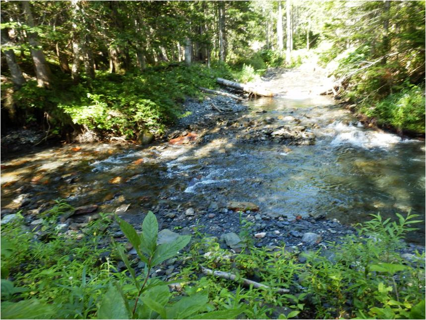 Ходил вниз и вверх по основной реке. Бивуак решил разбить на углу. На левом берегу Пурш-пурш и на правом берегу притока Скального. Воду брать с притока. Притащил рюкзак на место будущего бивуака. Первым делом напилил ольховых рогачков, колышков и длинную метра за четыре, тонкую ольху под удилище, пилил на правом берегу Пурш-пурш. Вторым делом переобулся, здесь за водой можно ходить в сандалиях. Ноги отваливаются. Да вообще сам убитый, укатала гора Граничная Тимоху, ох и укатала! Сколько дней придётся восстанавливаться?