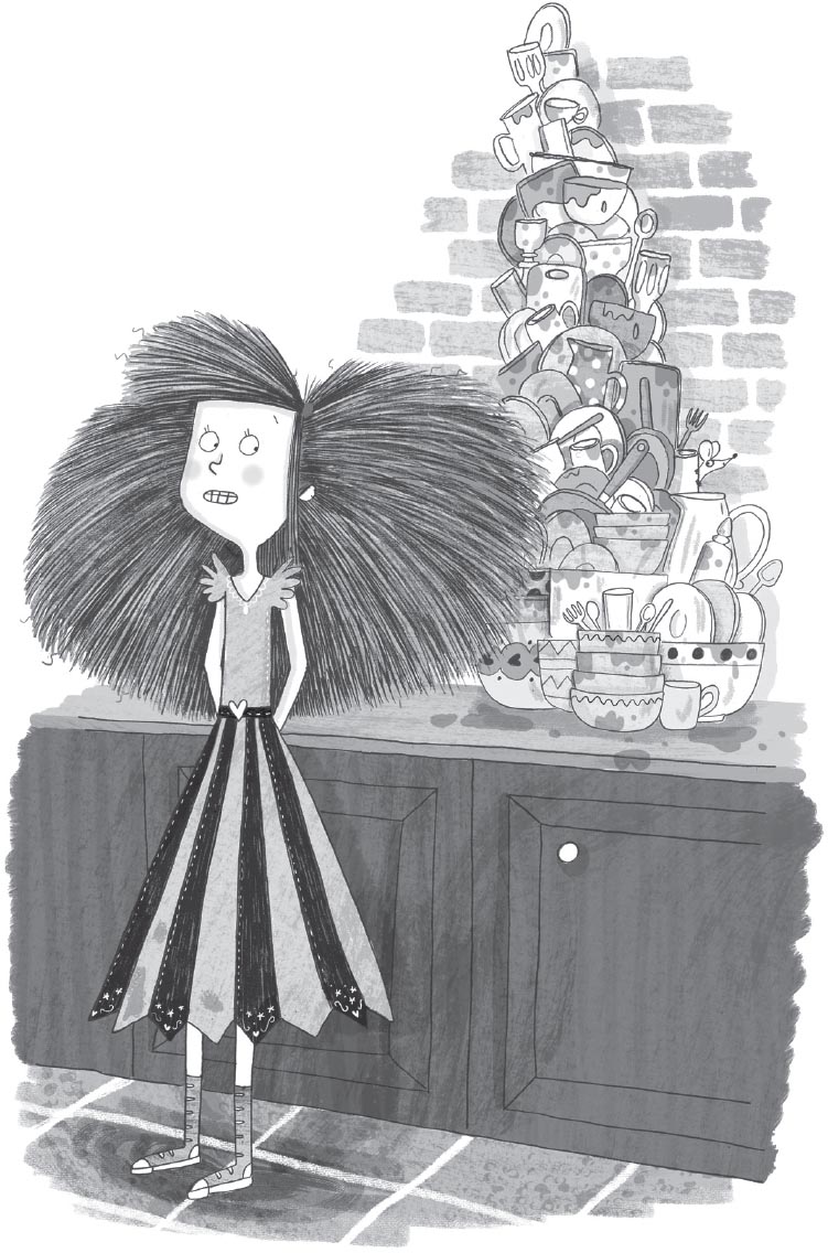 Cinders looked back at the pile of plates, bowls and saucepans stacked up in the sink. She had not done all the dishes. She had not done any of the dishes.