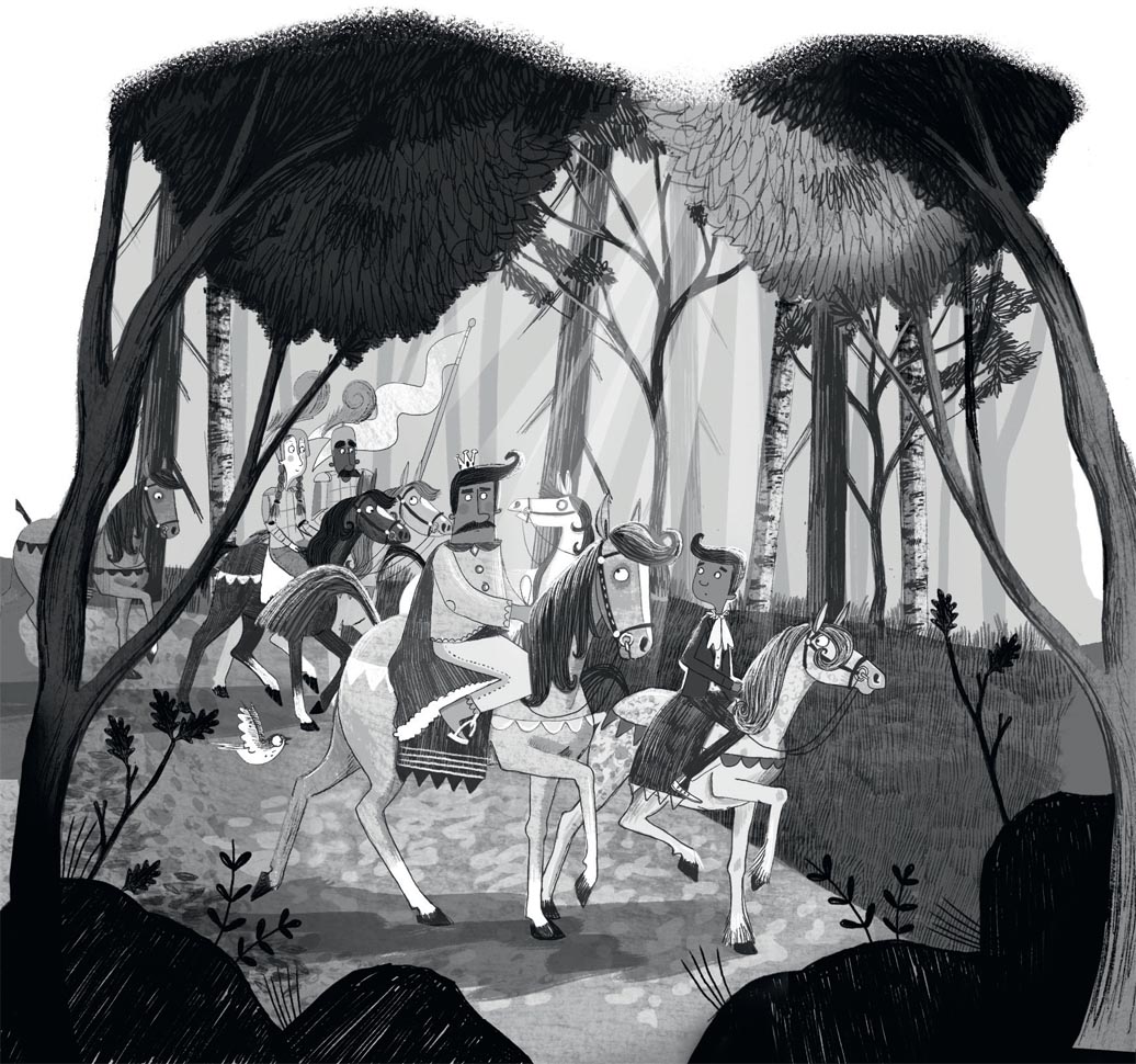 ‘And that’s what would happen,’ the king confirmed as the queen began to sob. ‘As it did to my grandfather’s brother, and his uncle before him. You would have to leave the kingdom and never, ever come back. You’d spend the rest of your life in the dark, dangerous place beyond the mountains and, let me tell you, no amount of horse riding could prepare you for a thing like that. It might not sound like it but Fairyland is a fearsome place, my son, and I won’t let them take you away.’