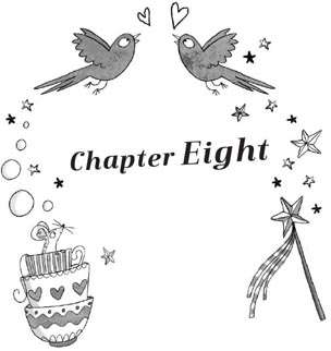 Cinders shook her head while shovelling a huge brownie into her mouth. ‘No, thank you very much,’ she said. ‘Not if I’d have to live like this. I thought this was going to be a fun party, but everyone looks so miserable. I’d much rather live in my pink cottage in the forest where I can run around in the woods or play with my dog. Although, I have to say, the puddings here are top-notch.’