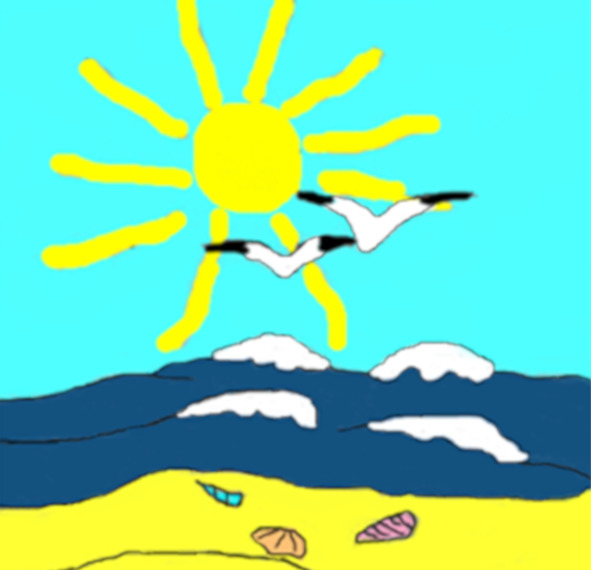 – Ветер вольный, помоги и летать нас научи. – Она щелкнула пальцами и тотчас налетел ветер, закружил листья вокруг, оторвал девочку и ее друга от земли и поднял высоко-высоко в небо. Мимо пролетающие птицы радостно приняли их в свою стаю. Это было увлекательное путешествие. Под ними пролетали королевства, реки, леса и поля. Наконец они увидели под собой синее, переливающееся на солнце море. Они начали снижаться, и через время ветер опустил их на пустынный пляж. Ярко светило солнце. Море было в хорошем настроении. Волны плавно набегали на берег. Чайки парили над водой и, заметив принцессу и ее друга, громко закричали: