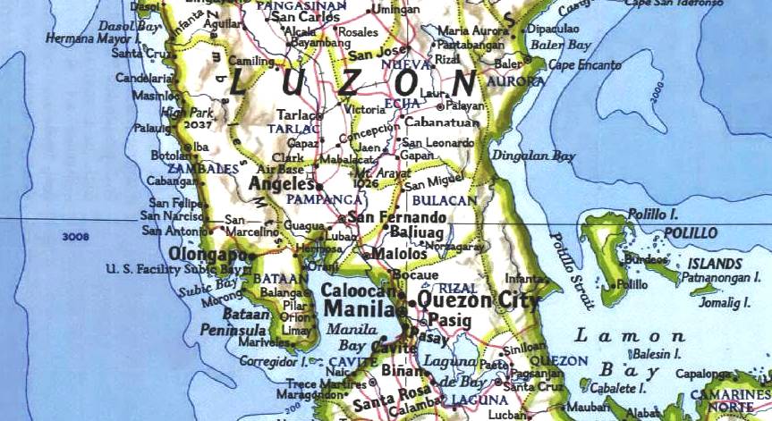 Балер и прилегающая часть острова Лусон, современная карта