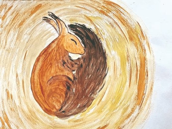 Белочка была дома. Укрывшись своим пушистым хвостиком, она тихонечко лежала в углу и смотрела в никуда.