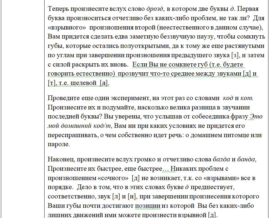 *здесь и далее все звуки и транскрипции речи заключаются в квадратные скобки. Это упрощение несколько противоречит принятым стандартам отражения фонематических /…/ и фонетических […] транскрипций, однако облегчит восприятие материала целевой аудиторией моей книги, т.е. неподготовленным читателем. С этой же целью в последующих главах книги все транскрипции даются русскими буквами;