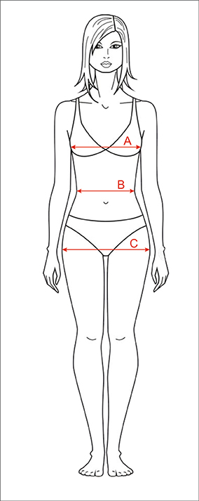 Измерение проводится в самой широкой части участков груди и бедер. И в самой узкой части талии.