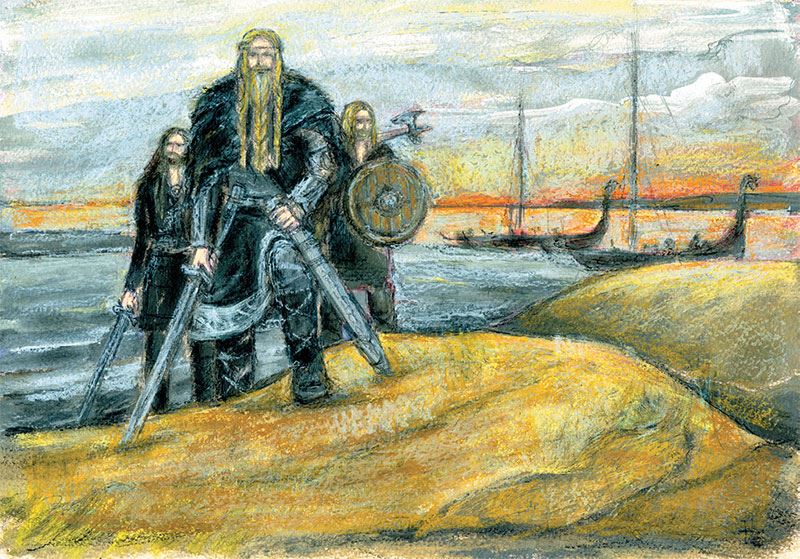 Плыли вдоль берега Ладожского озера драккары славного в норвежской земле ярла[239] Сигурда Длиннобородого, мудрого в королевском совете и непобедимого в бою. Скучной показалась ярлу жизнь на черных скалах родного фьорда[240] после того, как вернулся из самого прекрасного города в мире Константинополя его старший брат Снуфри. Точно дивную сказку слушал Сигурд рассказы брата о странах, где солнце жарче огня в очаге, а золота, как песка морского. Райские птицы живут там, и зреют невиданные в родной Норвегии плоды, которые даже Одину[241] не приходилось вкушать – так сладостны были они! Женщины там знойны, как солнце Востока, и благосклонны они к чужеземцам с холодными голубыми глазами.