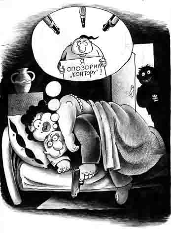 Зал, как компрессор, засосал весь воздух до отказа. Стало видно и слышно, как солнечные зайчики в предчувствии затмения забились в дальний угол помещения. На сцене из прогрызенного паркета появилась морда здоровенной крысы, чем-то напоминавшей одну из ведущих НТВ. Президиум сделал равнение направо, сконцентрировав свой взгляд на выступавшем. Панас живо представил себя невинной жертвой одного из процессов 37-го года.