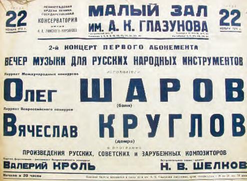 В годы моего преподавания в Ленинградской консерватории была записана моя первая пластинка. В 1972 году для многих исполнение строго академической программы на домре было в новинку. Записывали мы ее в зале Академической Капеллы с замечательным пианистом, великолепным музыкантом Валерием Кролем и с «легендой гитары» Львом Андроновым, одним из немногих гитаристов того времени, кто успешно гастролировал с сольными концертами.