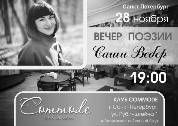 Неуловимая, изящная, порхающая, как балерина, лишь слегка достающая кончиками своих строк до земли, российская поэтесса Саша Вебер (Александра Цибизова) как бы рождена для этого искусства, искусства словотворчества. В прошлом музыкант, исполнитель классической музыки на гитаре, она все свои нотки и обертона собрала и внесла в переливчатую и непростую гамму языка, создав свою, веберовскую литературную колориатуру.
