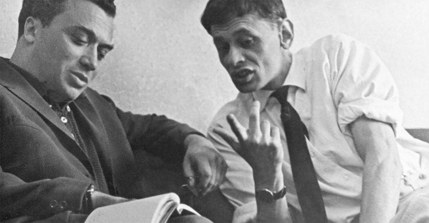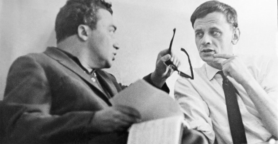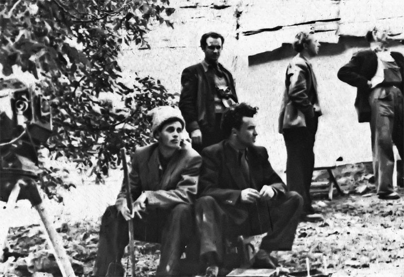 Владимир Наумов, Александр Алов на съемках своего дебютного фильма «Тревожная молодость». На заднем плане в центре – художник картины Владимир Агранов