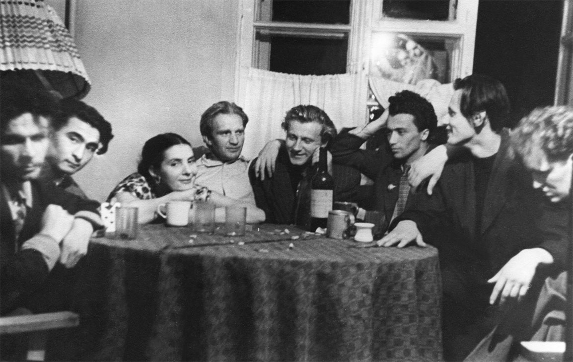 В общежитии ВГИКа Слева направо: Григорий Мелик-Авакян, Латиф Файзиев, Елена Лунина, Игорь Андреевич Савченко, Геннадий Юдин, Александр Алов, Владимир Наумов, Всеволод Воронин