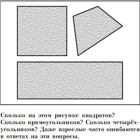 Умение же чётко классифицировать явления, выделяя их существенные характеристики, является тем, что в психологии называется понятийным мышлением. Очень мало даже взрослых и опытных людей имеют понятийное мышление. К примеру, в тесте, где на карточках изображены 2 камня, 3 ведра, 7 собак и 2 лошади, на вопрос, чего здесь больше – живых существ или физических тел, многие взрослые отвечают, что живых существ. Тогда как верный ответ – физических тел, поскольку все перечисленные элементы являются физическими телами (Веккер, 1976). До 70% взрослых отвечают на таком допонятийном уровне мышления (Ясюкова, 2010). Иными словами, даже взрослые проводят непонятное (даже для них самих) разделение между "физическими телами" и "живыми существами", хотя физические тела – это родовое понятие для живых существ (то есть более общее по отношению к ним, включающее и их).