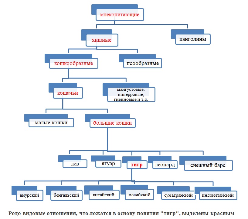 Схематически понятие "тигр" выглядит так (схема упрощена, намеренно пропущены некоторые группы):