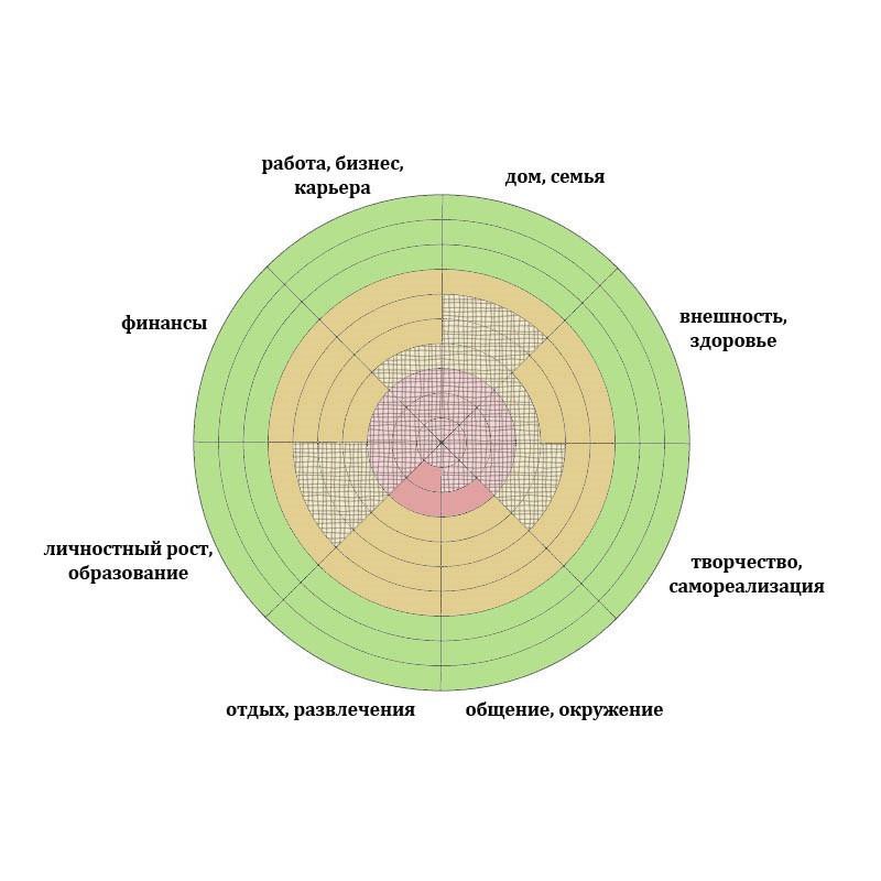 Не торопись сразу заполнить все Колесо. Подумай, дай реальную оценку своей жизни. Это ведь не урок в школе. Это твоя судьба сейчас меняется!