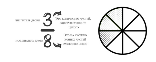 – сколько кусочков у нас есть (верхняя цифра в дроби)