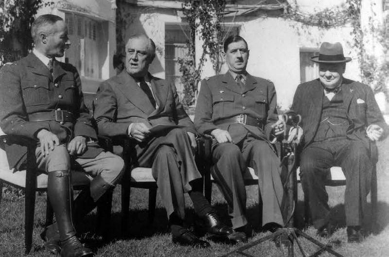 На конференции союзников в Касабланке: генерал Жиро, Франклин Рузвельт, генерал де Голль, Уинстон Черчилль (слева направо). https://2k8r3p1401as2e1q7k14dguu-wpengine.netdna-ssl.com/wp-content/uploads/2018/08/wertheim.jpg