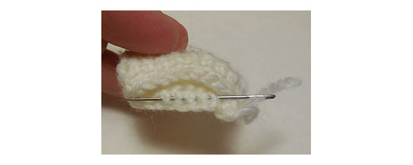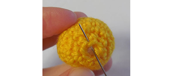 Прошить дважды по окружности головы. Ниточки закрепить, кончик вывести в голову.
