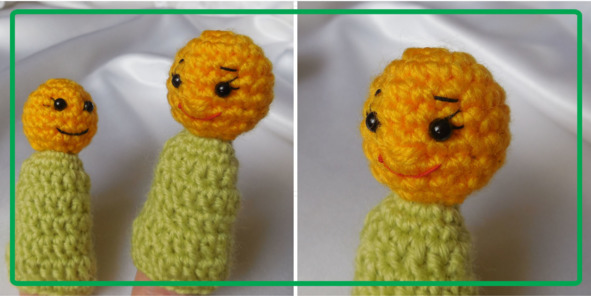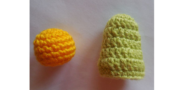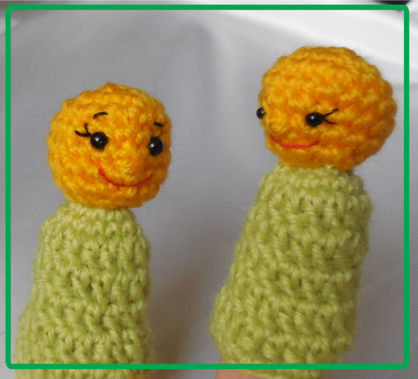 Пальчиковая куколка-Колобок состоит из двух частей – собственно колобка и пальчика – это будет травка.