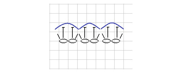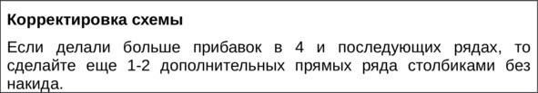 9 ряд. 24 Сбн. В том месте, где в предыдущем ряде вязали две дуги, Сбн вязать за одну сторону петли (за ближнюю сторону петли).