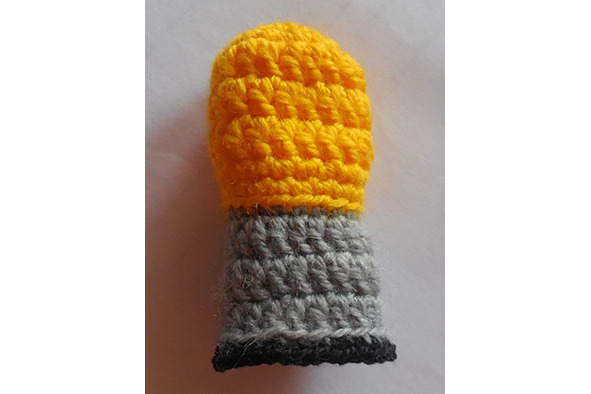 1. Колобка простыми нитками пришить к «пальчику»: