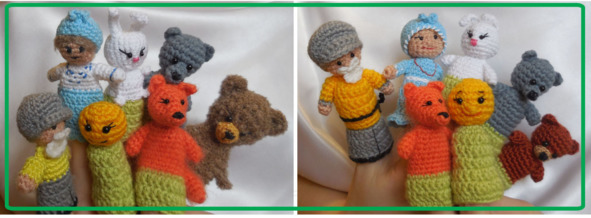 Пошаговые фото, подробные описанияе и обучающие материалы данного руководства помогут Вам связать сказочных персонажей. Связав героев сказок «Колобок» и «Курочка Ряба» Вы сможете связать в дальнейшем и другие сказки – Заюшкина избушка, Теремок и другие. После освоения приемов вязания пальчиковых кукол вы сможете связать в дальнейшем и других персонажей по образу и подобию.