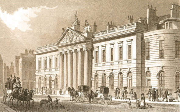 Британской Ост-Индской Компании на Лиденхолл стрит. Гравюра 1828 г.