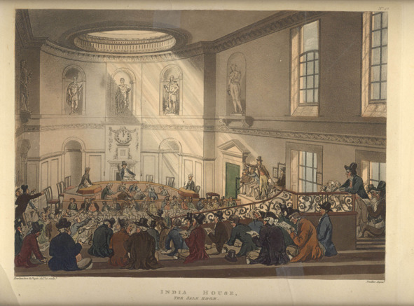 Лондонский чайный аукцион. Зал торгов. Гравюра XIX в.