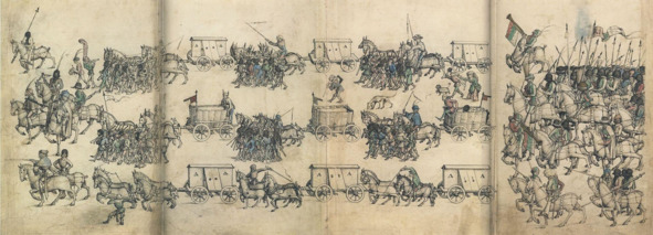 Торги военной добычей – это был наиважнейший для казначейства механизм определения размеров платы войскам. В военном походе армию всегда сопровождал обоз, в котором везли не только продовольствие, оружейные запасы и тяжелую штурмовую технику.