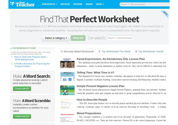 Ресурс соответствует своему названию: это то, что надо для очень занятого учителя. Материалов на разные темы очень много, есть удобный фильтр по типам заданий, уровню знания языка. Большое разнообразие тем. Есть упражнения на все виды речевой деятельности. Отдельно хочу отметить наличие статей на тему преподавания.