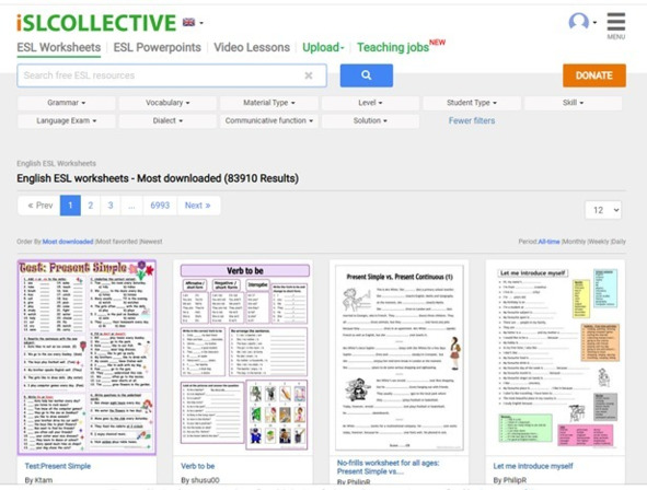 Отличный ресурс не только для тех, кто преподает английский. Есть также русский (как иностранный), французский, немецкий, испанский, португальский. Присутствует фильтр по многим критериям. Найдутся в том числе упражнения для учеников с особыми потребностями в обучении.