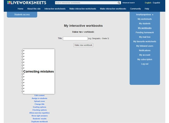 Если же ошибка в поле для текста (проверить можно, открыв How was it made?), ее можно исправить, добавив упражнение в My workbooks (я создала папку Correcting mistakes):