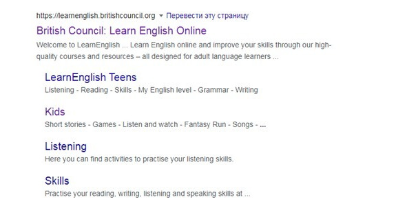 Нажав на Teaching English, вы сможете почитать статьи, посмотреть вебинары и пр.