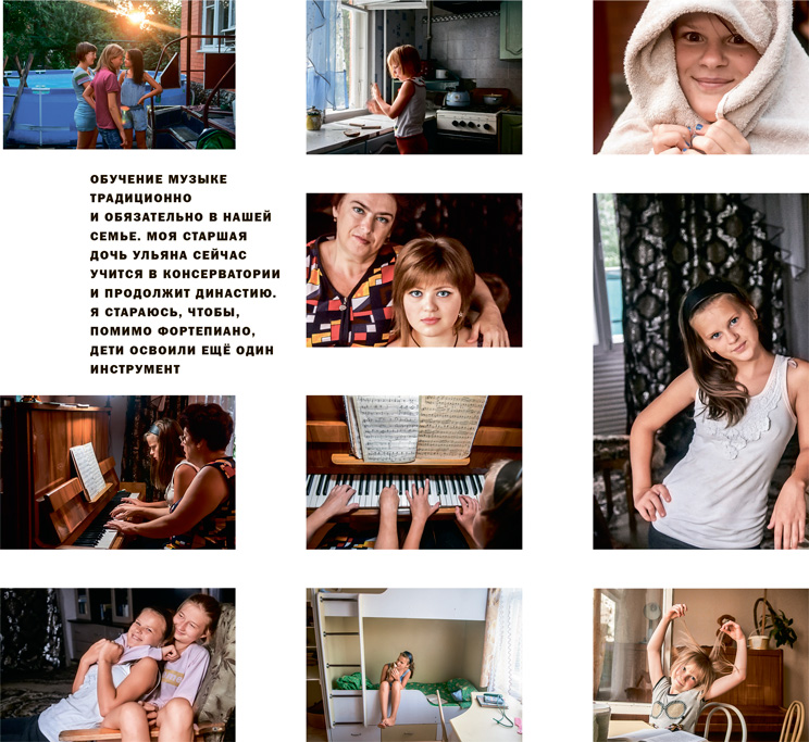 Разумная дисциплина и постоянство требований – один из краеугольных камней в воспитании. Надо сказать, что я представитель уже третьего поколения музыкантов-педагогов. Поэтому обучение музыке традиционно и обязательно в нашей семье. Моя старшая дочь Ульяна сейчас учится в консерватории и продолжит династию. Я стараюсь, чтобы, помимо фортепиано, дети освоили ещё один инструмент. Уля у нас играет на аккордеоне, Поля – на гитаре, Геля и Васса – на флейте. Аня начала учиться поздно, второй инструмент уже не успеет освоить. А какие концерты мы закатываем по праздникам! Соло, дуэты, трио, вокал, фортепианные ансамбли, танцы малышей под аккомпанемент старших сестёр. Ещё одна давняя традиция – дважды в год ставить домашние спектакли. Раньше в них участвовали соседские дети, а теперь, с прибавлением собственных актёров в семье, размах становится всё более грандиозным. Дети сами пишут сценарии, шьют костюмы, подбирают музыку, рисуют декорации. Мама – только консультант по спорным вопросам и художественный руководитель на генеральных прогонах. По-прежнему привлекаем соседских детей и подруг. Взросление детей можно отследить по названиям спектаклей.