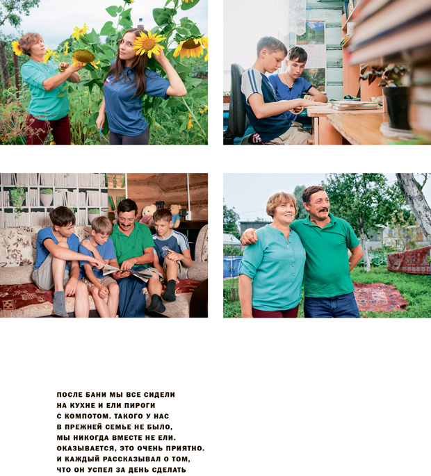 После бани мы все сидели на кухне и ели пироги с компотом. Такого у нас в прежней семье не было, мы никогда вместе не ели. Оказывается, это очень приятно. И каждый рассказывал о том, что он успел за день сделать, делился впечатлениями и новостями. Шумно становилось, когда приезжал старший брат Кирилла Станислав. Он играл на гитаре и красиво пел, сочинял стихи и знал много интересных игр. Он учился на учителя информатики и математики. А ещё у него был ноутбук, и каждый раз он привозил новые мультфильмы и интересные фильмы, которые мы смотрели всей семьёй. Прямо как в кинотеатре.