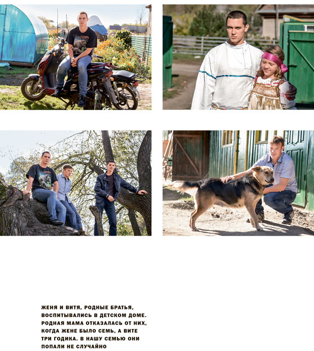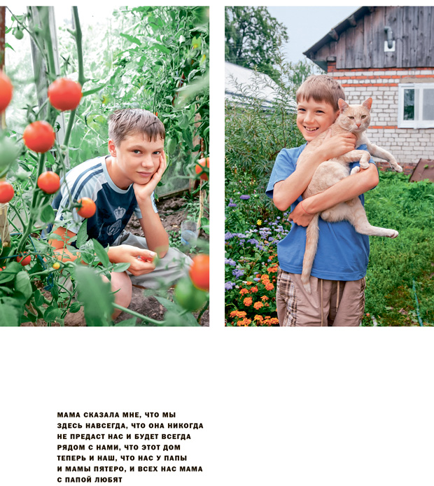Что такое счастье?Проще нет ответа.Оно есть у каждого –Это наши дети!Семья растётВ нашей семье произошли большие перемены: она стала больше на два человечка. Женя и Витя, родные братья, воспитывались в детском доме. Родная мама отказалась от них, когда Жене было семь, а Вите три годика. В нашу семью они попали не случайно. Женя учился в одном классе со старшим сыном Димой. Часто приходил к нам в гости, а на каникулы мы брали его на «гостевую». Нам с мужем очень нравился этот спокойный и исполнительный мальчуган. Когда расформировали детский дом, в котором воспитывались мальчишки, Женю с братом отправили в Троицкий детский дом. Женя звонил Диме, говорил, что очень скучает по селу, по друзьям и одноклассникам. Дима тоже был расстроен. На совете семьи мы решили, что Женю нужно пригласить к нам. Но его не отдавали без брата Вити. Витя оказался очень хорошим мальчишкой, и с девчонками он быстро подружился. Спокойный, ласковый и покладистый Витя очень нам понравился.