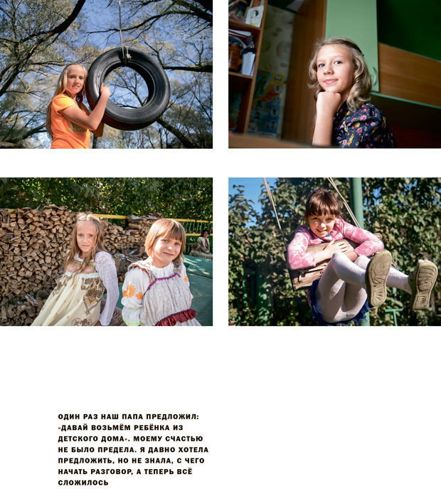 Наш папа какое-то время работал в детском доме водителем автобуса, возил детей то в лагерь, то в санаторий, перевозил из приюта в детский дом. Он постоянно говорил, что они все такие хорошие и умные ребятишки. В один прекрасный день, он забирал детей из приюта «Забота». Ему сказали, что у них есть две хорошие девочки, которым нужна родительская забота и ласка. Они с Ниной были одного возраста. Мы подумали, почему бы нам не навестить этих девчонок. Когда приехали к ним в гости, они казались такими маленькими беззащитными воробушками. Девчонки, получив подарки, охотно стали с нами общаться. Олеся спела песенку, которую выучила в приюте, Лиза показала на пальцах, сколько ей годиков. Ниночка подарила им по куколке и пригласила в гости. Позже социальный педагог, который присутствовал при нашей встрече, сказал, что мы первая семья, с которой они пошли на контакт. Обычно они зажимались, отворачивались и, надув щёки, молчали. Что я тогда испытывала, не знаю. Мне их было сильно жалко, было просто трудно представить, что пришлось пережить этим маленьким девочкам. Я стала постоянно думать о них: как они там, что едят, кто с ними занимается, вдруг их никто не возьмёт. Что с ними будет?