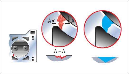 В двигателе ВАЗ-21011 пробило прокладку под головкой блока цилиндров. «Вскрытие» показало, что жидкость пошла в четвертый цилиндр по образовавшейся канавке, которую будто кто-то выгрыз. Отремонтировать головку можно с помощью «холодной сварки» QuikSteel. Вначале остро заточенным маленьким зубилом аккуратно срубите все заусенцы и выступы, стараясь придать канавке правильную форму. Затем зачистите ее шкуркой, обезжирьте бензином «калоша» и плотно замажьте препаратом. Через 15-20 мин, когда масса затвердеет, срежьте выпуклости острым ножом и зашкурьте заподлицо с плоскостью головки.