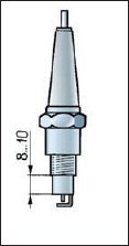 Чтобы поправить резьбу под свечу в алюминиевой головке блока цилиндров, полезно иметь инструмент, показанный на рисунке. Его рабочая часть изготовлена из свечи с длинной резьбовой частью. Изолятор и электроды удалены, нижняя часть пропилена так, что в сжатом состоянии свободно проходит в отверстие.