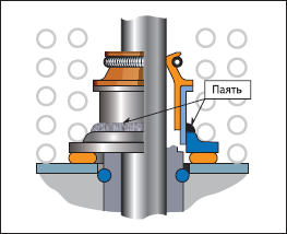 Замена втулки – дело дорогое и сложное. Описанный ниже способ поможет временно устранить проблему. Сняв тарельчатую шайбу (опору внутренней пружины клапана), впаиваем в нее припоем ПОС-61 колпачок (диаметр последнего немного меньше диаметра отверстия в шайбе). Высоту пайки нужно подобрать так, чтобы обеспечить нормальную сборку узла. Нижнюю сторону опорной шайбы уплотняем резиновым кольцом и герметиком.