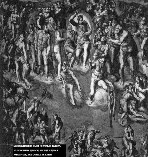 Все папы «эпохи Микеланджело» – Юлий II, Климент VII, Павел III – известны только тем, что пользовались его услугами. Всегда небрежно одетый, перемазанный красками и осыпанный мраморной крошкой, он мрачно смотрел на очередного первосвященника и упорно отстаивал свои интересы – размер вознаграждения, содержание работ, сроки их выполнения. И даже позволял себе ссориться с ними. Когда Эрнст Неизвестный говорит: «Хрущева будут вспоминать потому, что я с ним поссорился», это звучит забавно. Скажи что-то подобное Микеланджело, это было бы чистой правдой – папа Юлий II вошел в историю тем, что дважды ссорился с художником.