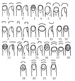 В Древней Индии существовала божественная наука Аюрведа, которую, согласно легенде, создал Брахма – верховное божество в индуизме. Данной наукой владели просветленные риши, лекари, и с ее помощью они могли не только ставить безошибочный диагноз, но и излечивать болезни. Древние лекари считали, что по форме ногтя, его состоянию и цвету можно определить, здоров человек или страдает каким-то недугом. Каждый палец связан с определенным органом. Так, указательный палец взаимосвязан с легкими, большой – с черепом и мозгом, средний – с двенадцатиперстной кишкой, безымянный – с почками, мизинец – с сердцем.