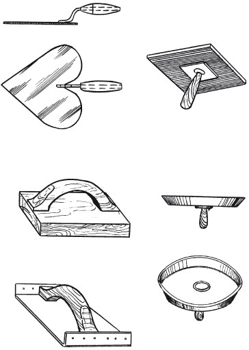 Для оштукатуривания потолка необходимы следующие инструменты (рис. 3): лопатка штукатурная, сокол и терка. Также для работы понадобятся шпатель, правило, уголок и отвес.