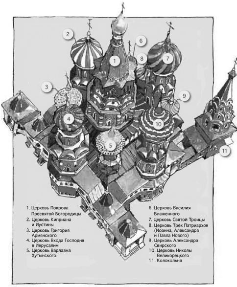 Несомненно, на должности придворных строителей и зодчих в Москве с охотой зачисляли иностранцев. Однако трудно представить, чтобы Ивана Грозного и митрополита Макария в качестве плана замышлявшейся общеправославной святыни мог увлечь лишь бумажный чертеж (если предположить, что таковой был им показан).[32] В средневековой Руси храмосозидание являлось не только искусством, но и священнодействием, подобным иконописанию. Царь и митрополит хорошо знали, чего хотели, и не доверили бы возведение сооружения исключительной значимости безвестному иноземцу, не испытав его способностей.