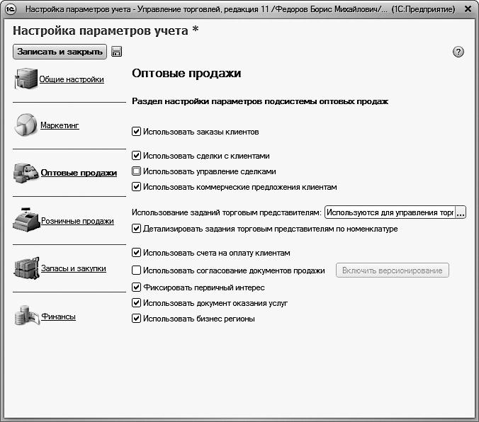 Чтобы перейти к настройкам учета оптовых продаж, щелкните в левой части окна (см. рис. 2.1) на ссылке Оптовые продажи. В результате окно примет вид, показанный на рис. 2.3.