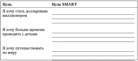 А теперь прошу Вас самостоятельно переделать каждую из приведенных ниже «обычных» целей в SMART-цель. Очень важно выработать в себе навык сразу же на автомате переформулировать любые цели, которые Вы ставите, в цели SMART. И лучший путь для этого – тренировка!