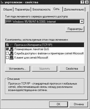 • Тип подключаемого сервера удаленного доступа (вкладка Сеть) – PPP: Windows 95/98/NT4/2000, Internet (рис. 1.2);
